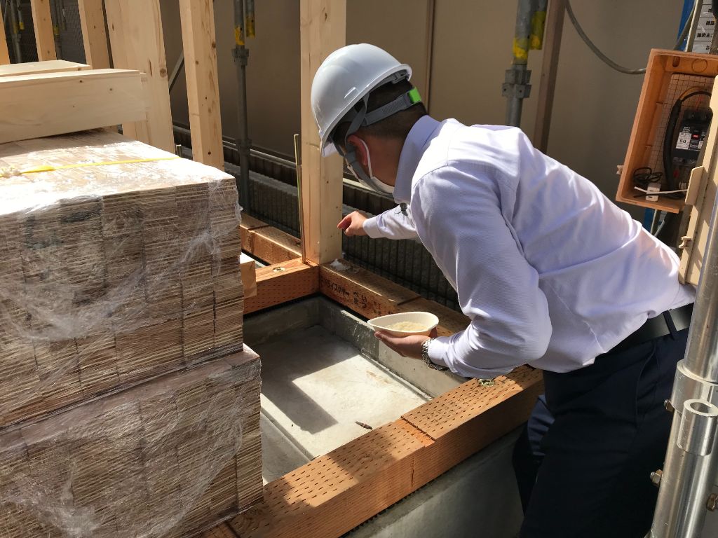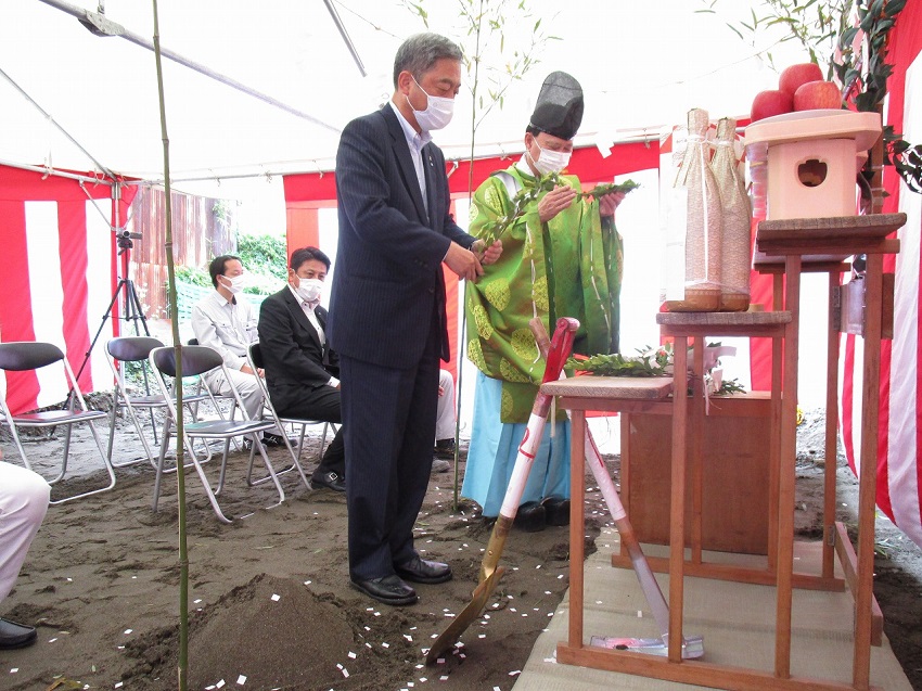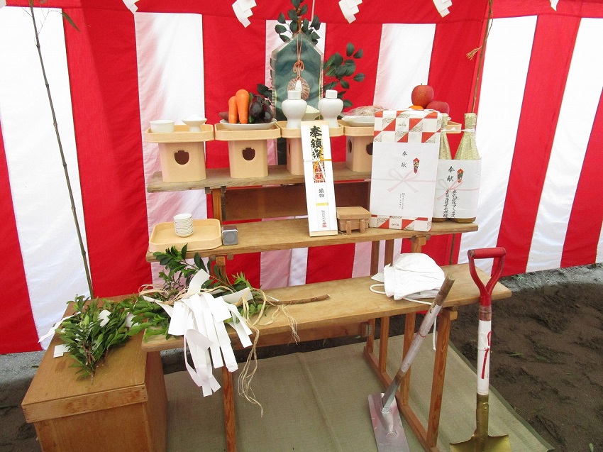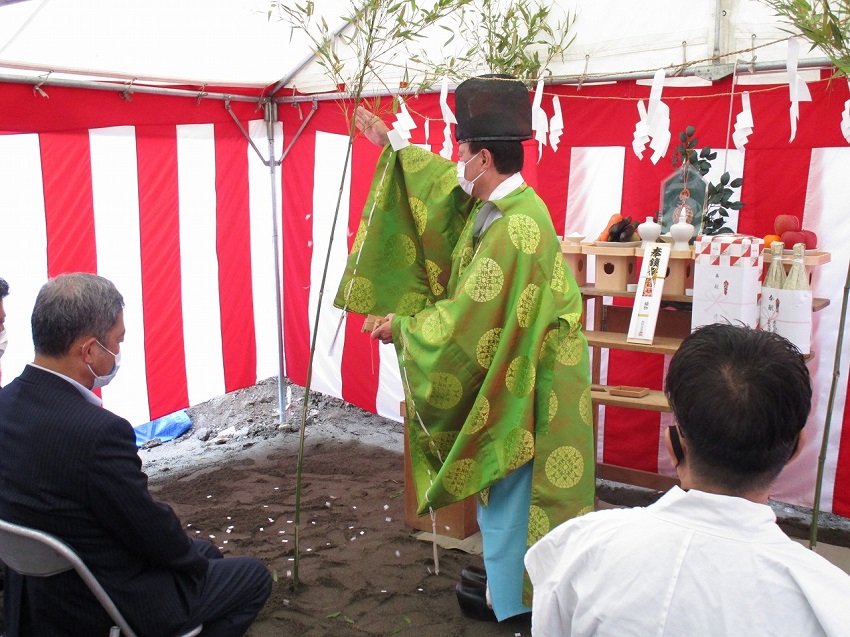 こちらの現場では5月19日の大安の日に地鎮祭を行いました。