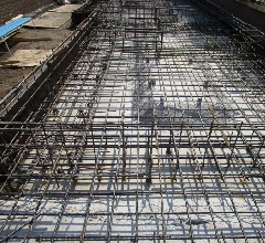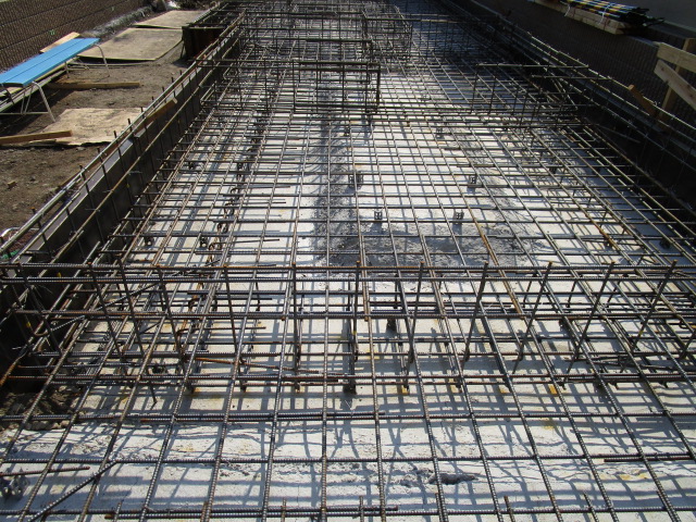 基礎の骨組みを組み上げます。この骨組みに二回に分けてコンクリートを流し込みます![]()