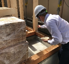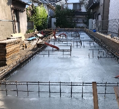 2枚目の写真は生コンの流し込みです。写真の配筋の中で飛び出している部分はこの後立ち上げという工程のために必要になってきます![]()