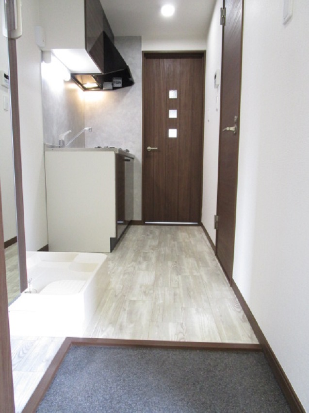 玄関入ってすぐのところにシューズボックスがあり、奥にキッチンがあります![]()