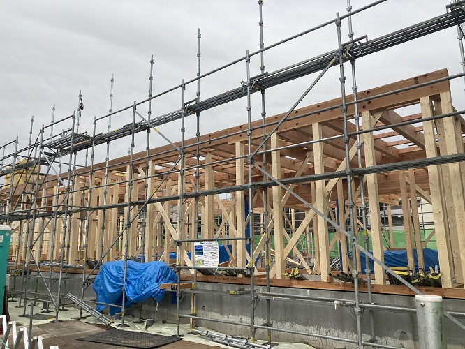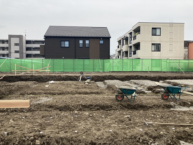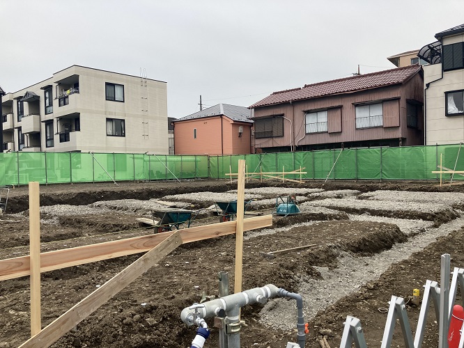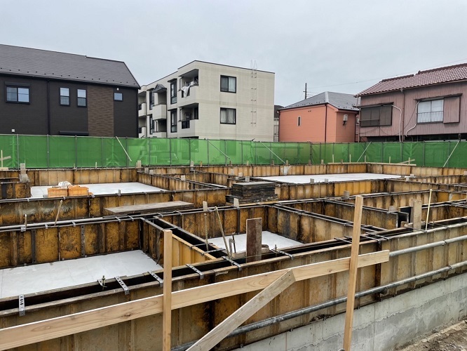 前回の投稿の写真と比較すると、土台の工事がかなり進んでいますね