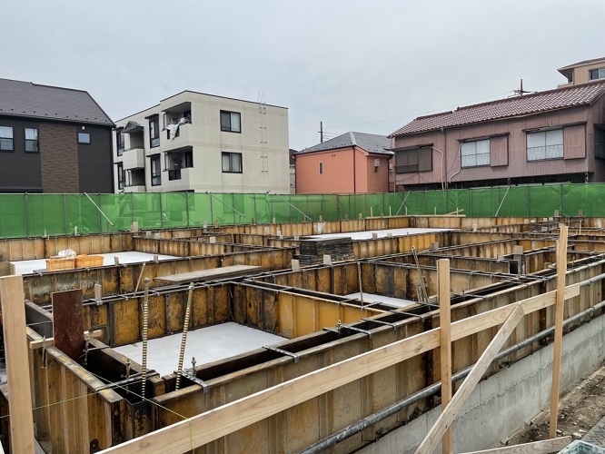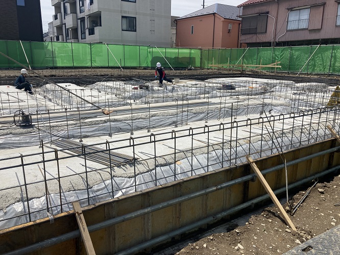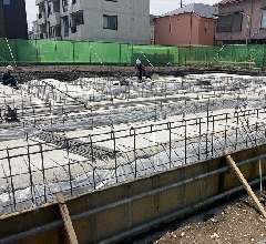 こちらの現場では、基礎工事の配筋作業が行われています。