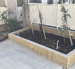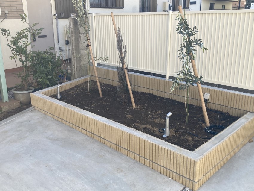 また、花壇の両端にはオリーブの木を2本植えました![]()