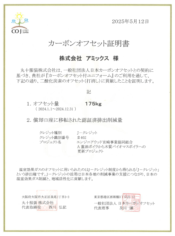 昨年につづき、アミックスは「カーボンオフセットユニフォーム」を取り入れ、国連が主導するCO2削減活動に参加いたしました。