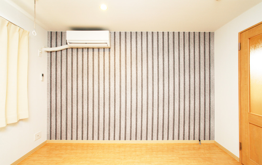 ブラウンの木目の壁で、シックで落ち着いた大人の雰囲気を演出