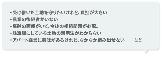 せっかく土地をお持ちなのに、活用できなくてはもったいないですね。アミックスでは、『高収益な賃貸住宅』を中心に有効な土地活用法をご提案しています。当社は『地域密着型の資産運用会社』として、お客様とご一緒に将来の資産運用を考え、一生お付き合いいただけるトータルアドバイザーを目指しています。