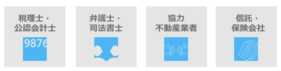 土地活用を成功させるには、さまざまな専門の知識が重要です。アミックスでは、土地活用に関する各分野の専門家と独自のネットワークを築いています。各専門家と協力して、お客様の資産運用を強力にバックアップいたします。