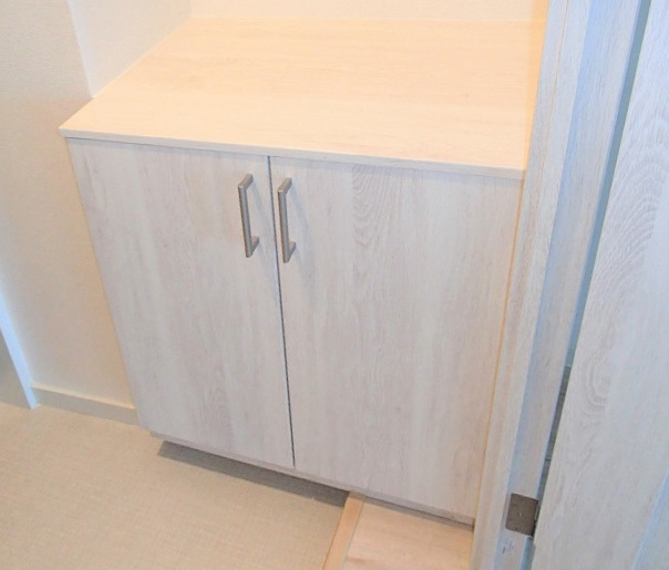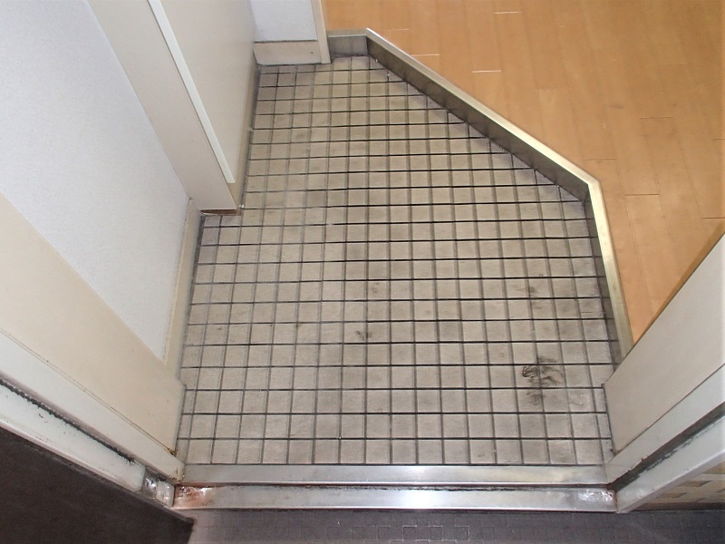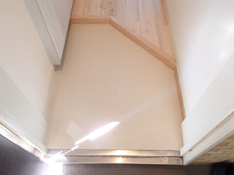汚れた玄関タイルも一新 明るい色で視覚的にも広めに感じられます