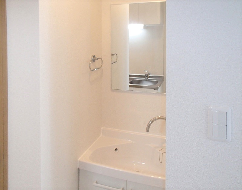 洗面は廊下に作ったスペースに独立させました! 収納もあるので洗面まわりが片付きます