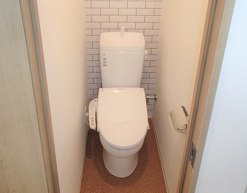 トイレも新しくなり、 内装はタイル×コルク調で仕上げました
