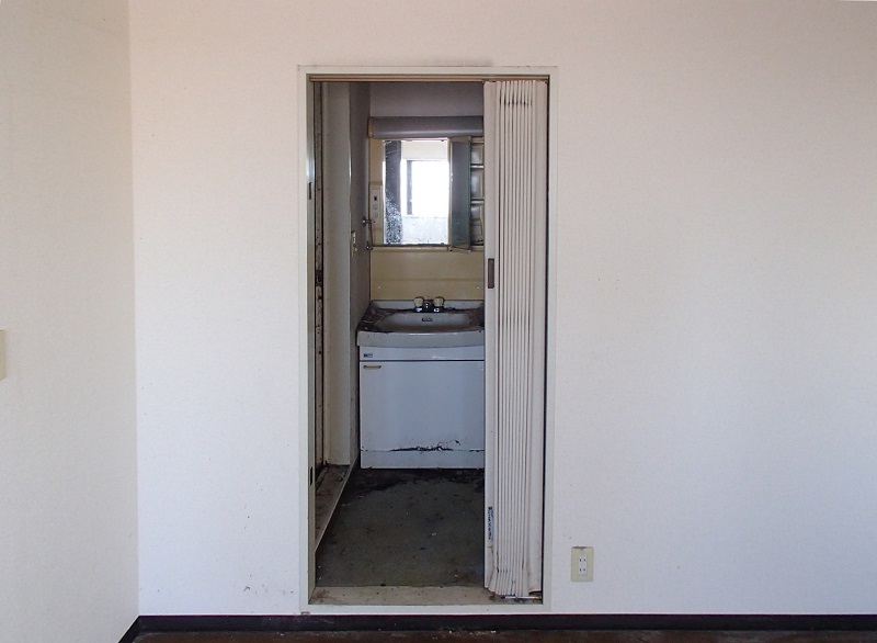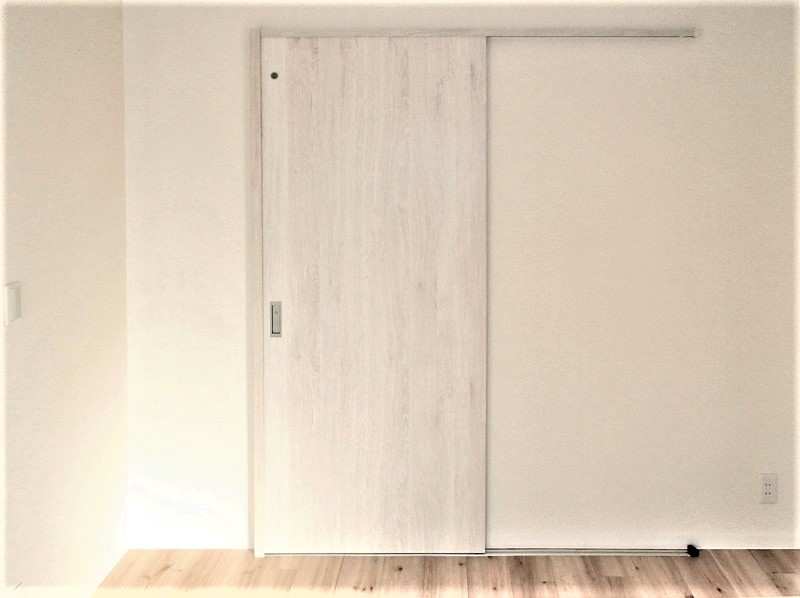 アコーディオンカーテンしかなかった脱衣室には、 ホワイトオークの引戸がつきました