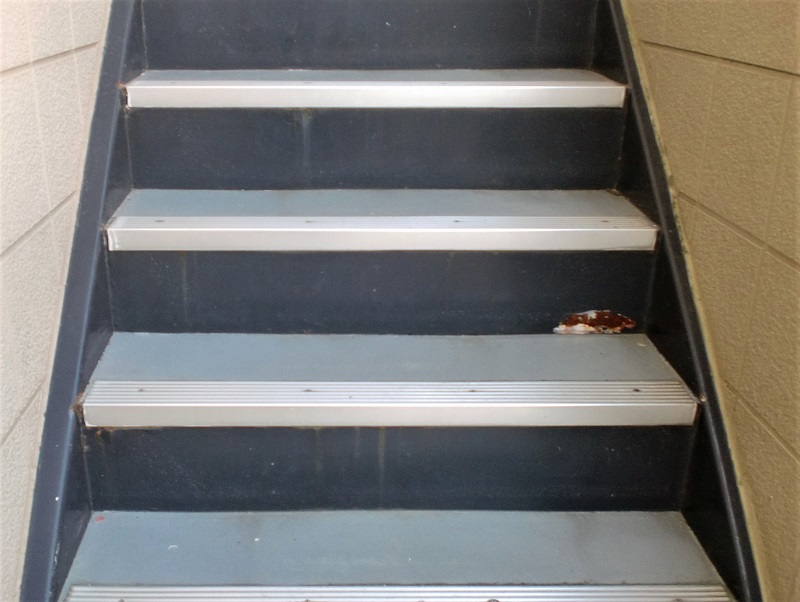 サビが出ていた階段部分には歩行用シートを施工 雨で足元が濡れているときでも滑りにくくなります