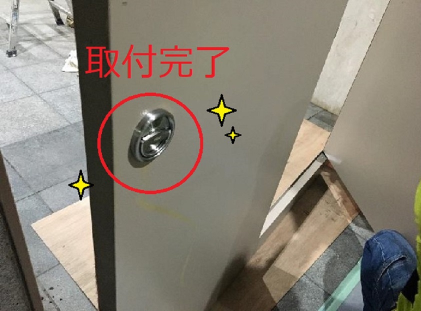 ケースハンドルを取り付けて設置が完了しました。 夜間で労力の大きい工事でしたので、関わってくださったみなさまに感謝です。