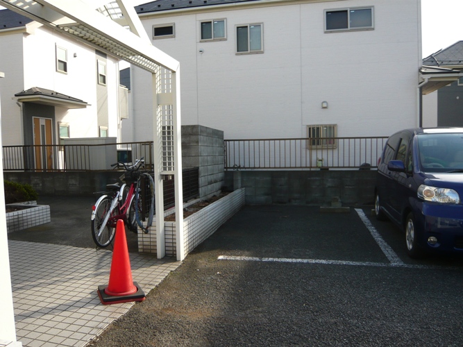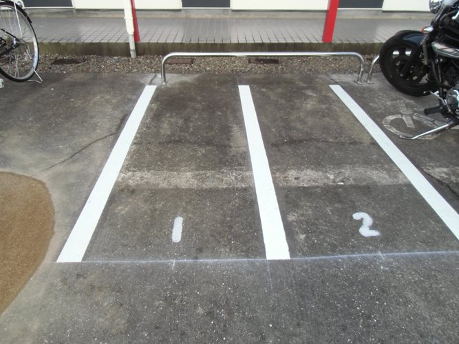 白線を引き、バイクの駐輪スペースを作りました。
