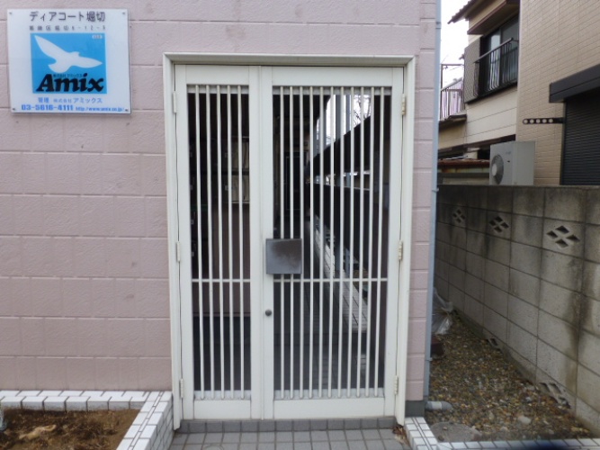 エントランスの扉を撤去し、花壇には玉砂利を敷きました。