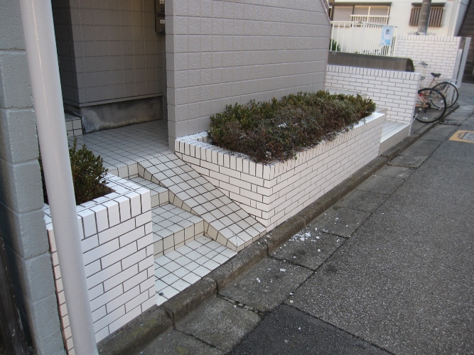 エントランスの前の植栽を伐根し、サツキの植込にしました。