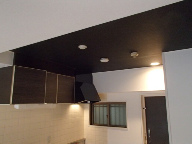 吊り戸棚を交換しました。 照明も交換しています。
