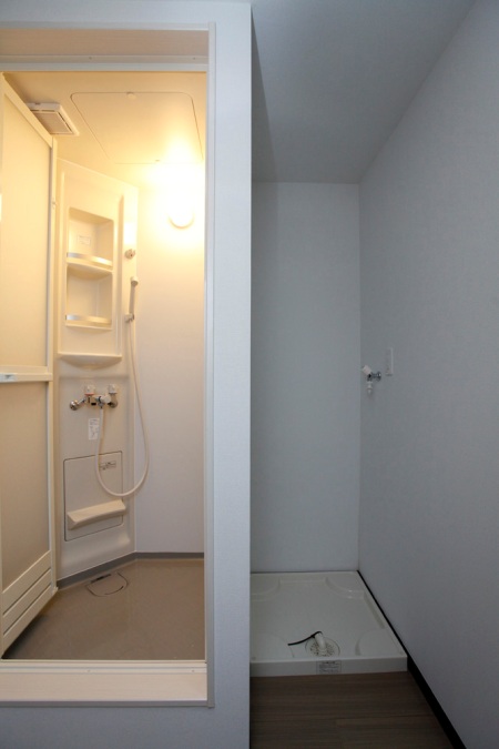 3点式のユニットバスを シャワーブースとトイレに分けました。 バス・トイレ別になりました。