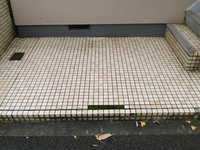 エントランス横のタイルは洗浄し、泥をとりました これだけで物件の印象がかわりますね