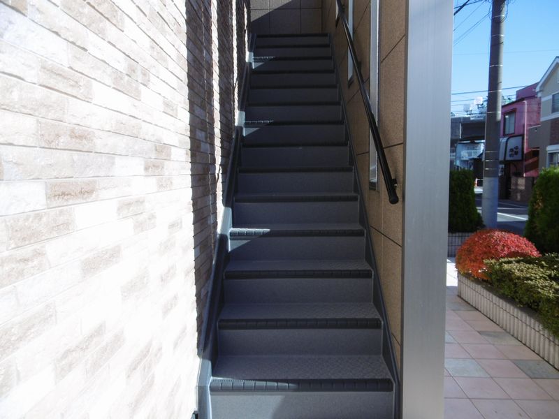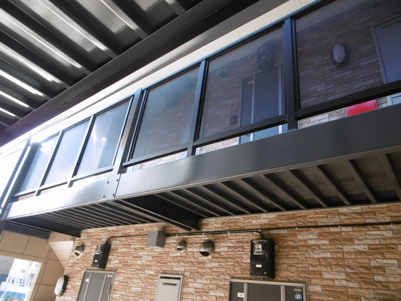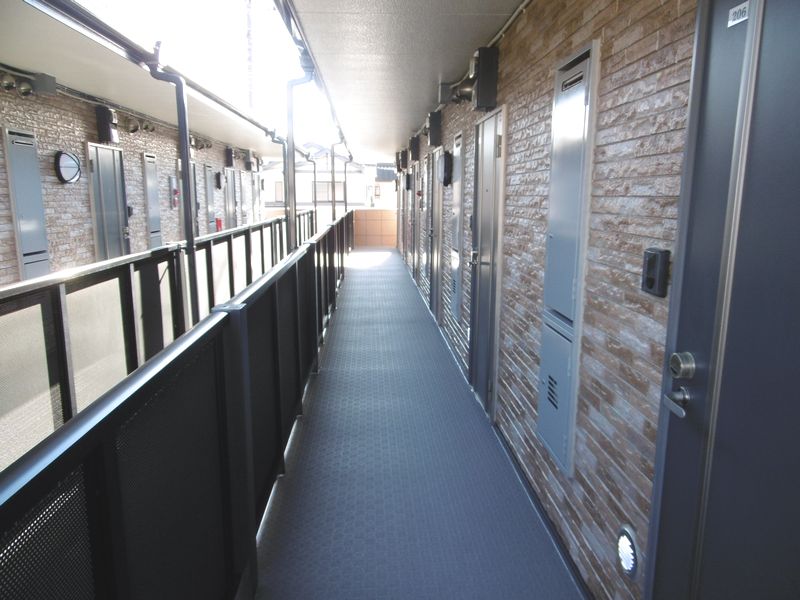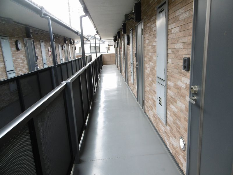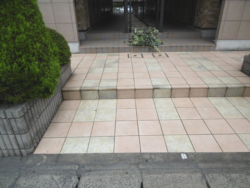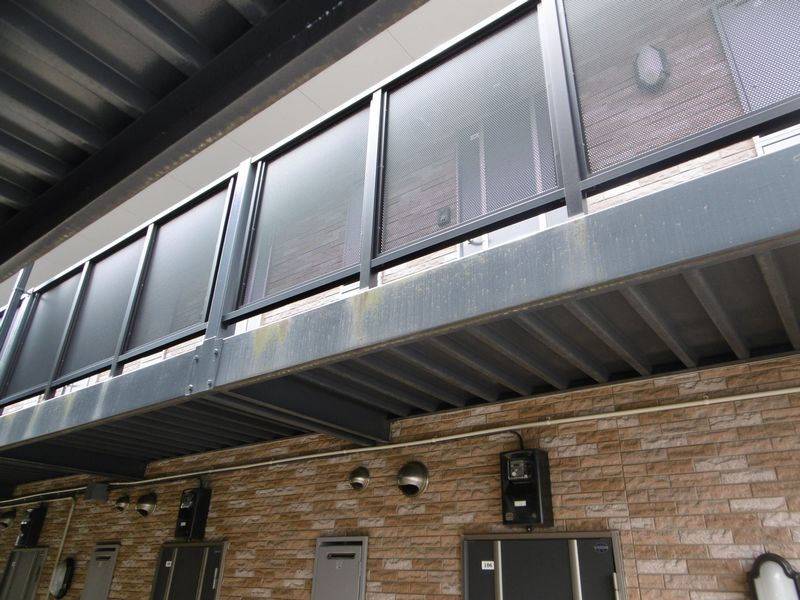 - 屋根高圧洗浄/プライマー下地処理/コロニアル塗装/外壁高圧洗浄/シーラー下地処理/サイディング塗装(クリアー仕様)/階段天井塗装/軒裏/破風板/水切り/雨水管塗装/コーキング打替/外部土間洗浄/メイン階段フッ素塗装/2階廊下デッキ裏塗装/給湯器ボックス塗装/ガスメーターボックス塗装/弱電ボックス・消火器BOX塗装/2階廊下歩行用シート/階段歩行用シート(踏面蹴上一体)/エアコン保温間テープ巻き/消火器交換/アプローチ及び塀タイル洗い/基礎モルタル補修