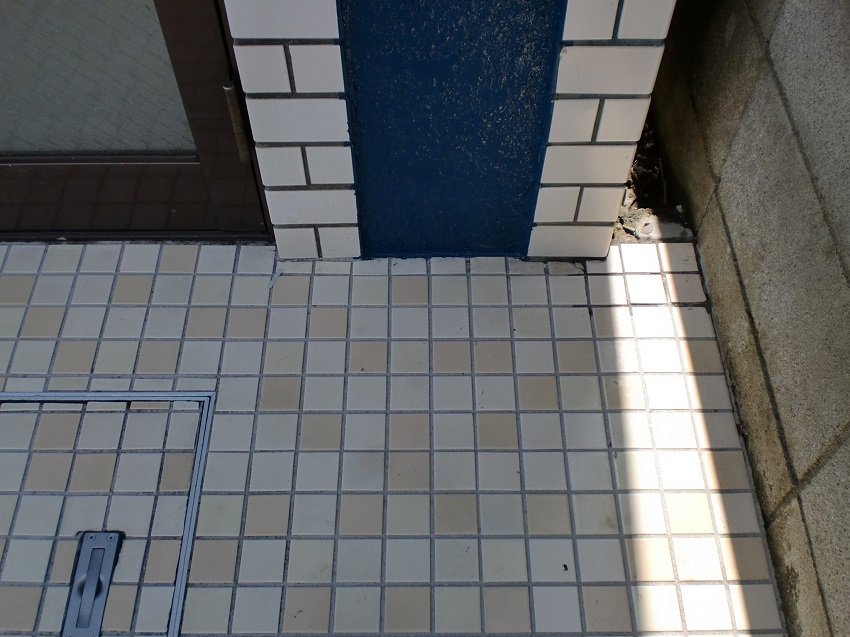 タイルを洗浄しました 隙間に挟まっている、泥や長年の汚れがとれ、真っ白になっていますね