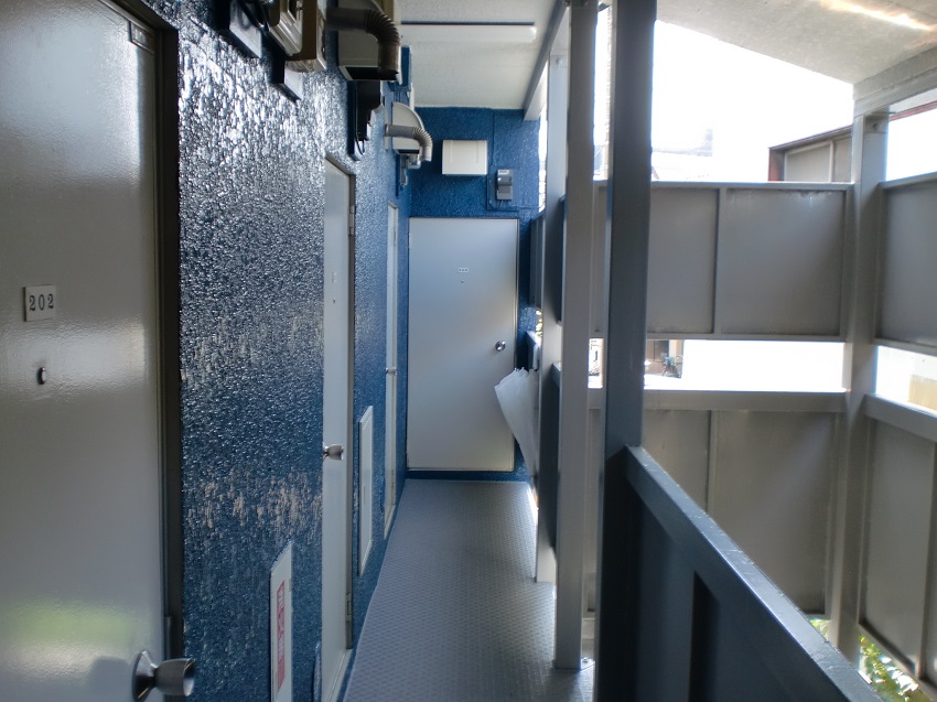 雨などで錆付いた廊下の鉄部もキレイになりました 見た目の印象が全然違いますね