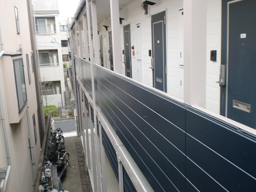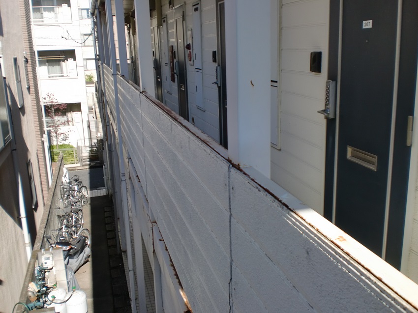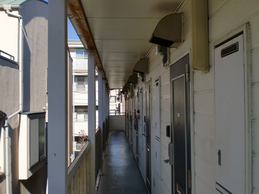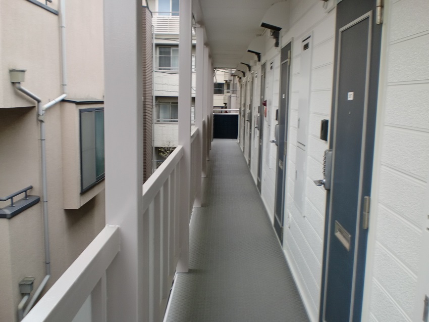 廊下の鉄部と床のシートを塗装し直しました 比べ物にならない程キレイになっています