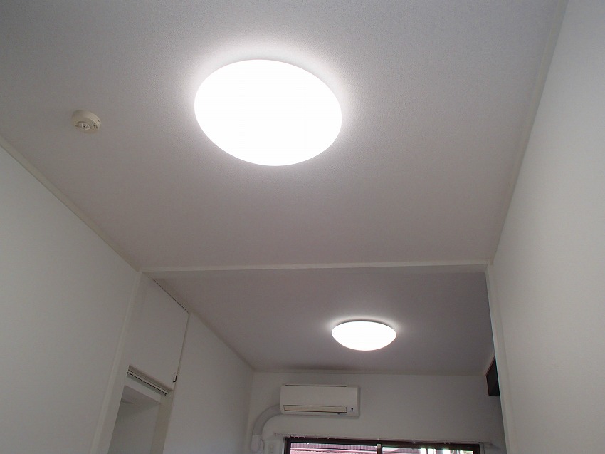 キッチン・居室の照明器具を交換しました。 ペンダントタイプの照明を、壁付けのシーリングライトに交換しました。 部屋全体が、以前よりも明るく開放的になりました。