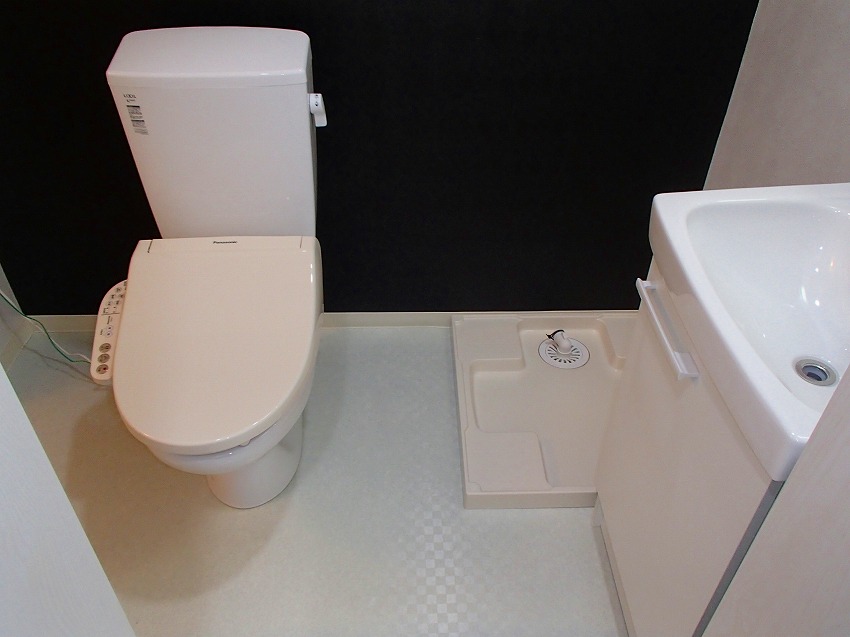 洗面化粧台を新設しました。 写真では確認できませんが、鏡やコンセントがついています。 3点式ユニットバスと比べると、格段に居住性がアップしました。 洗濯機置場の防水パンを交換しました。 こちらも写真では確認できませんが、選択水栓も交換しました。 給水ホースが外れた際に、水が出なくなるストッパーがついているため、水漏れの心配も軽減されます。