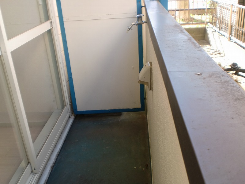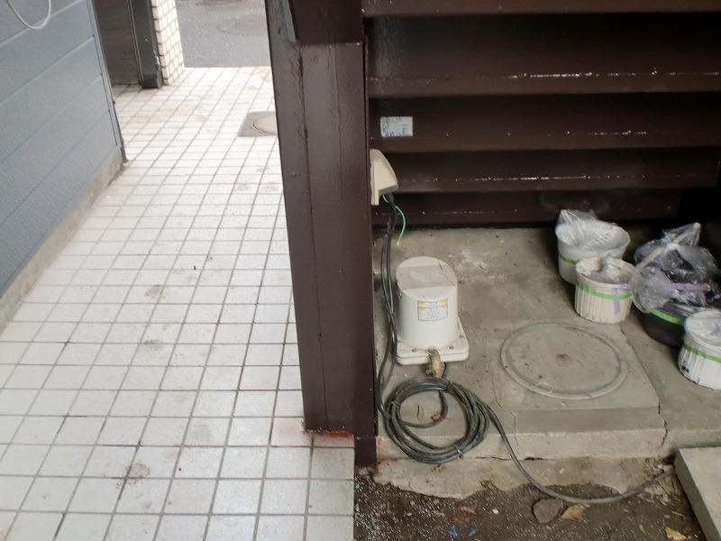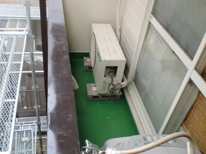 ベランダの防水工事を行いました 部屋の外にある室外機の保温管テープも巻き直しています