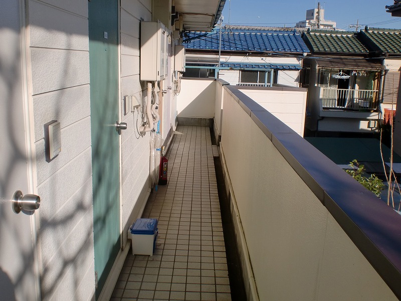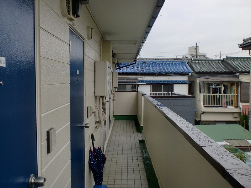 2階の廊下の様子になります 色あせていた、玄関扉も塗装し直しました