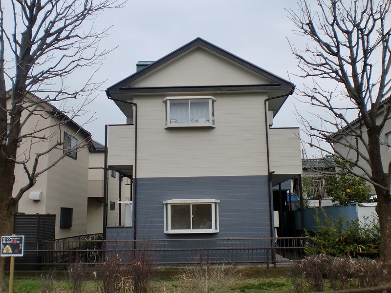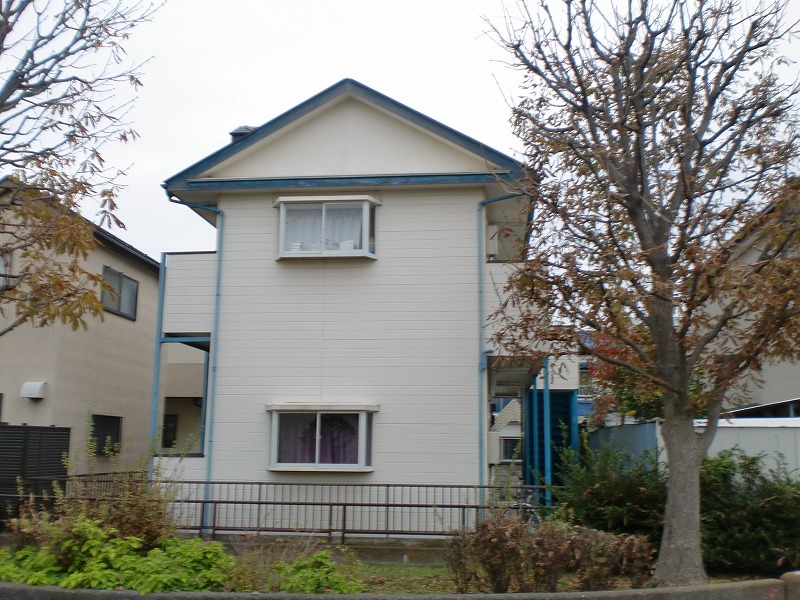築31年の物件の塗装工事と一部補修工事を行いました 新しい外壁はホワイトとブルーを使い分けていて、とてもオシャレになりました