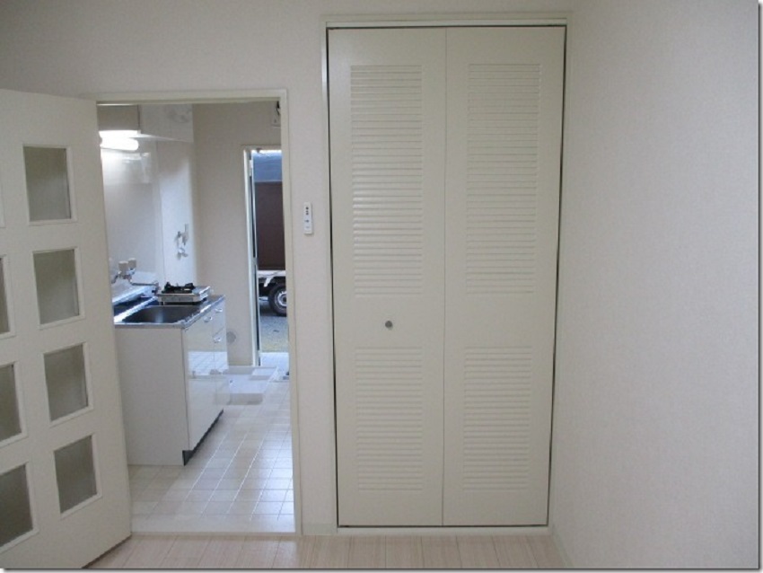 色褪せた収納扉を塗装しました。 白を基調としたお部屋に馴染んでいますね。