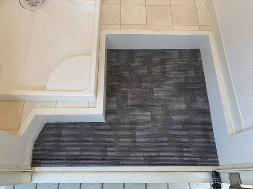 防水パンを設置しました。 万が一の水漏れもこれで安心です。
