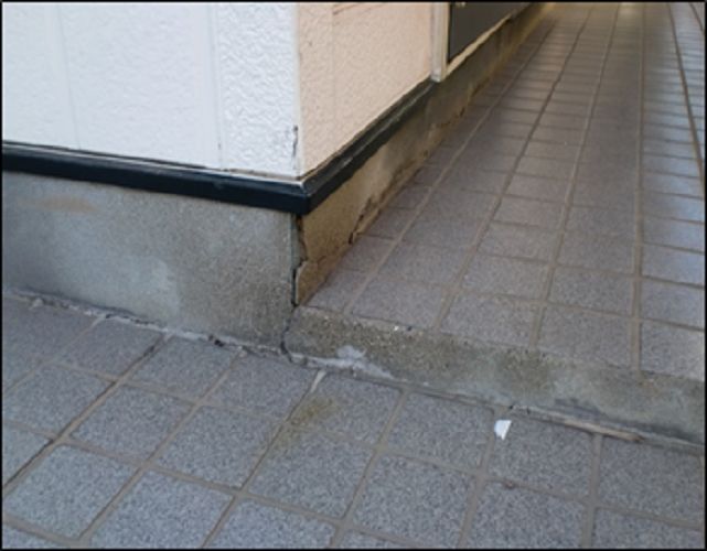 基礎モルタル補修の工事です。 ひび割れもすっかり綺麗になりました