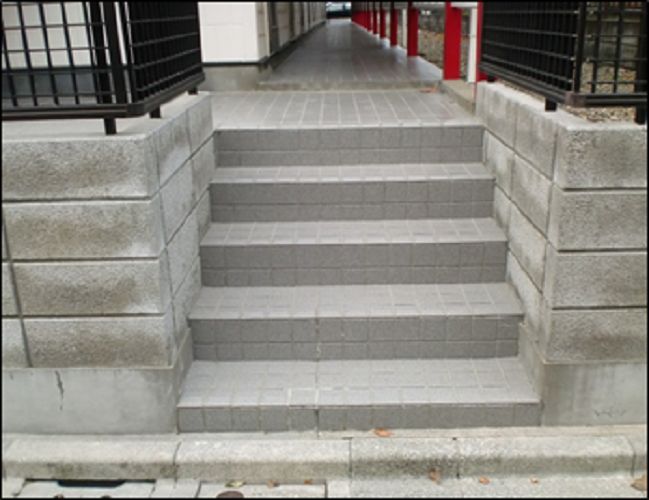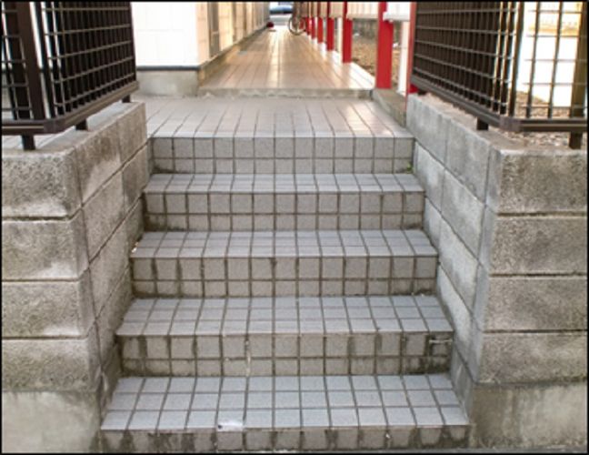 階段タイル補修とタイルの洗浄です コケや汚れがきれいに落ちて、見違えますね