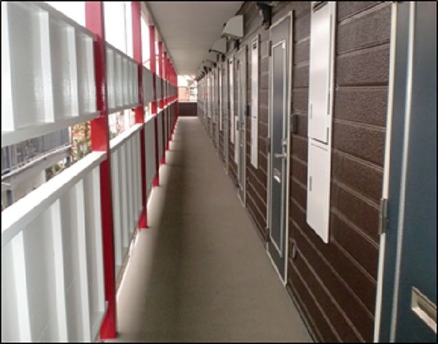 廊下鉄部塗装、シート洗浄を行いました! こまめにメンテナンスすることで 26年経った今も、満室稼働です