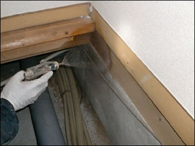 白蟻工事の写真です 防除散布はこのようにして行われるのですね