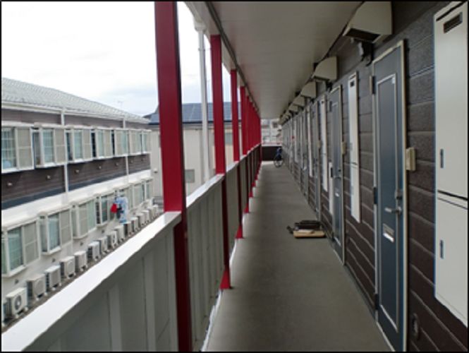 廊下の鉄部塗装・シート洗浄を行いました! 入居者の方は、毎日通る場所が綺麗になって きっと嬉しいはずです
