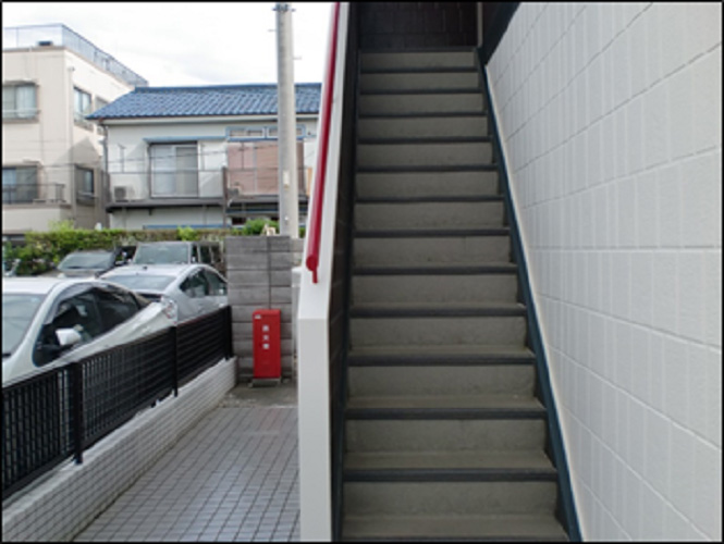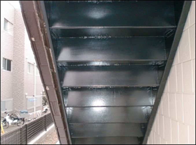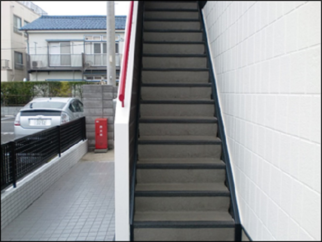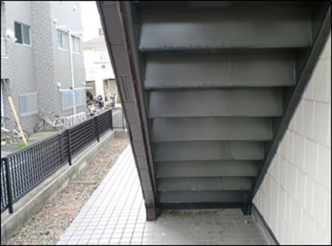 階段の鉄部塗装とシート洗浄を行いました アパートのメンテナンスをこまめに行うことで 築20年以上たった今でも、綺麗な状態を保っていますね