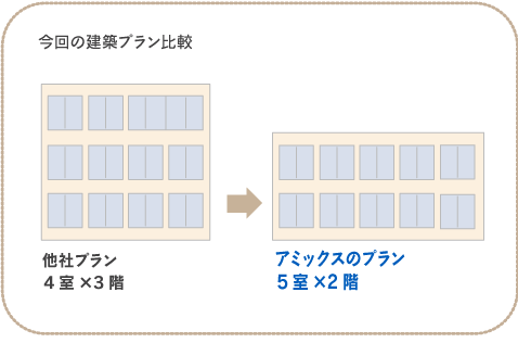 鶴山 いえ、こちらの敷地なら、1階に5室つくることができる広さです。だから2階建てでも10室確保できるんですね。これは単身者であれば十分な広さなんです。
