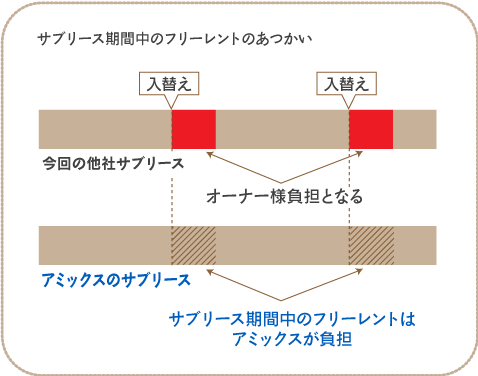 鶴山 そうですね。アミックスは契約当初のフリーレント期間のみ、オーナー様にご負担いただいています。