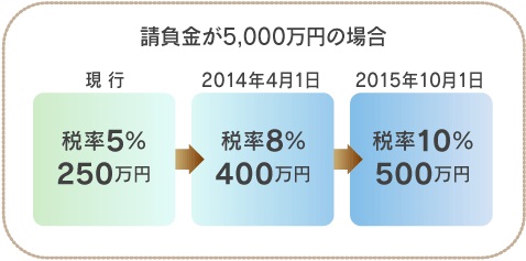 2014年4月には現行の5%から8%に、さらに翌2015年10月からは10%へと段階的に引き上げられます。