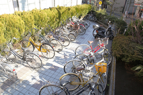 こちらは駐輪場です。敷地が広い割にごちゃごちゃした印象でした。