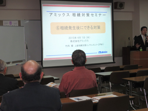 投稿時間 : 2015年05月21日 15:024月1日(水)、「第7回 想続塾」が開催されました。今回の演目は「相続発生後にできる対策」です。第1期「相続対策セミナー 6回シリーズ」も今回で最終回となりました。