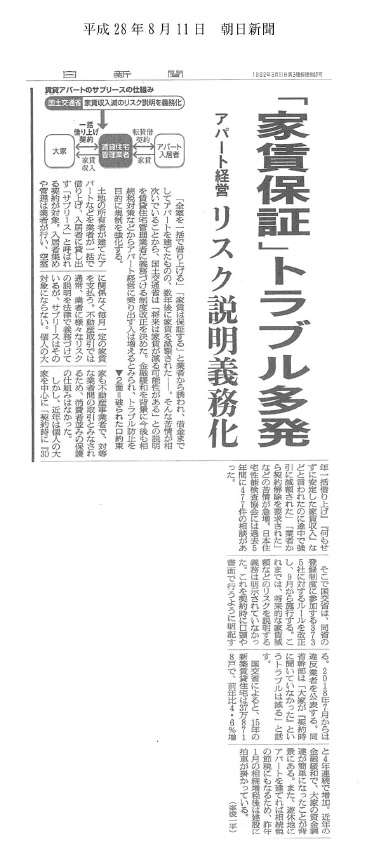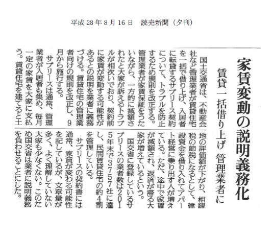 今年8月、大手新聞誌面でサブリース関連の問題が相次いで報道されました。