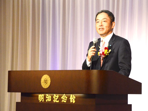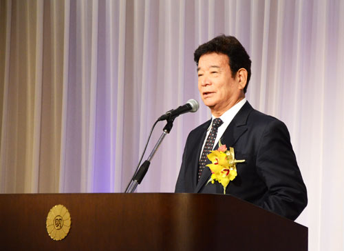 乾杯のご発声は、衆議院議員で元環境大臣の鴨下一郎先生にお願いいたしました。鴨下先生とは縁あって長くお付き合いをさせていただいております。オーナー会「綾友会」を発足した折には、初代会長をお願いし、快くお引き受けいただいたこともあります。
