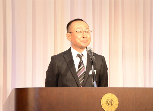 祝賀会は、おかげさまで盛会のうちに終了することができました。閉会の挨拶は常務の佐々木がつとめさせていただきました。