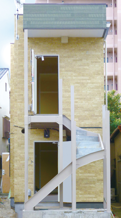 長屋建ては一般的なアパートと異なり、共有の階段や廊下がなく、それぞれの独立した玄関に直接入れる構造となっています。今回のように、一般的なアパートの建築は難しいとされる間口の狭い旗竿地にも建てることができます。