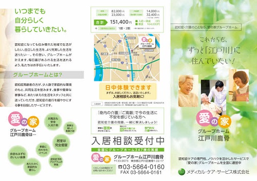 この「愛の家 グループホーム江戸川鹿骨」は、アミックスと同じ三光ソフラングループの「メディカル・ケア・サービス」が運営しています。